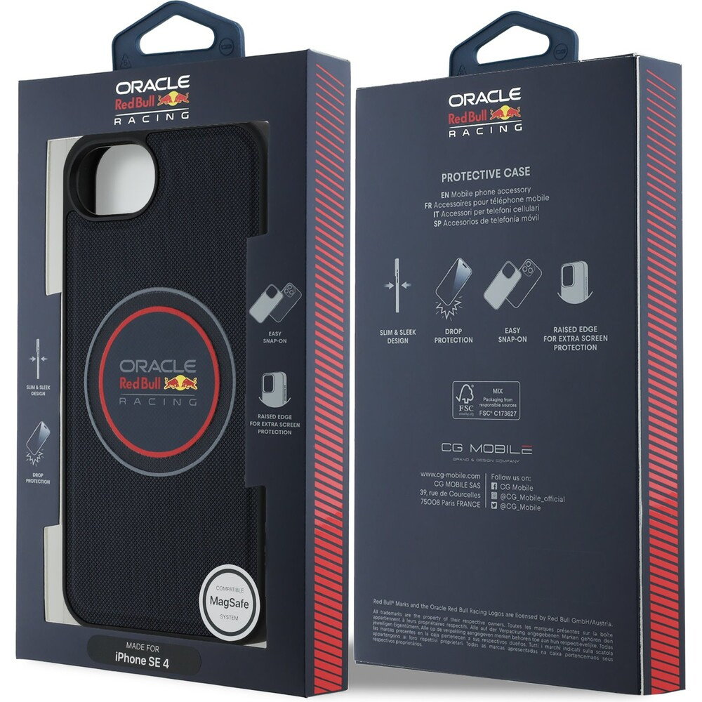 Oracle Red Bull Racing PU Leather Red Ring MagSafe kryt iPhone 16e modrý