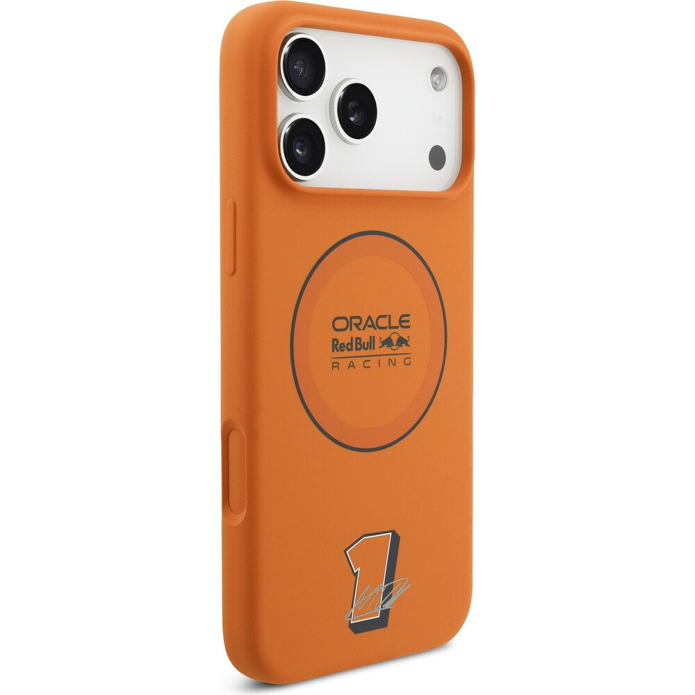 Oracle Red Bull Racing Silicone Blue Ring MagSafe kryt iPhone 17 Pro Max oranžový