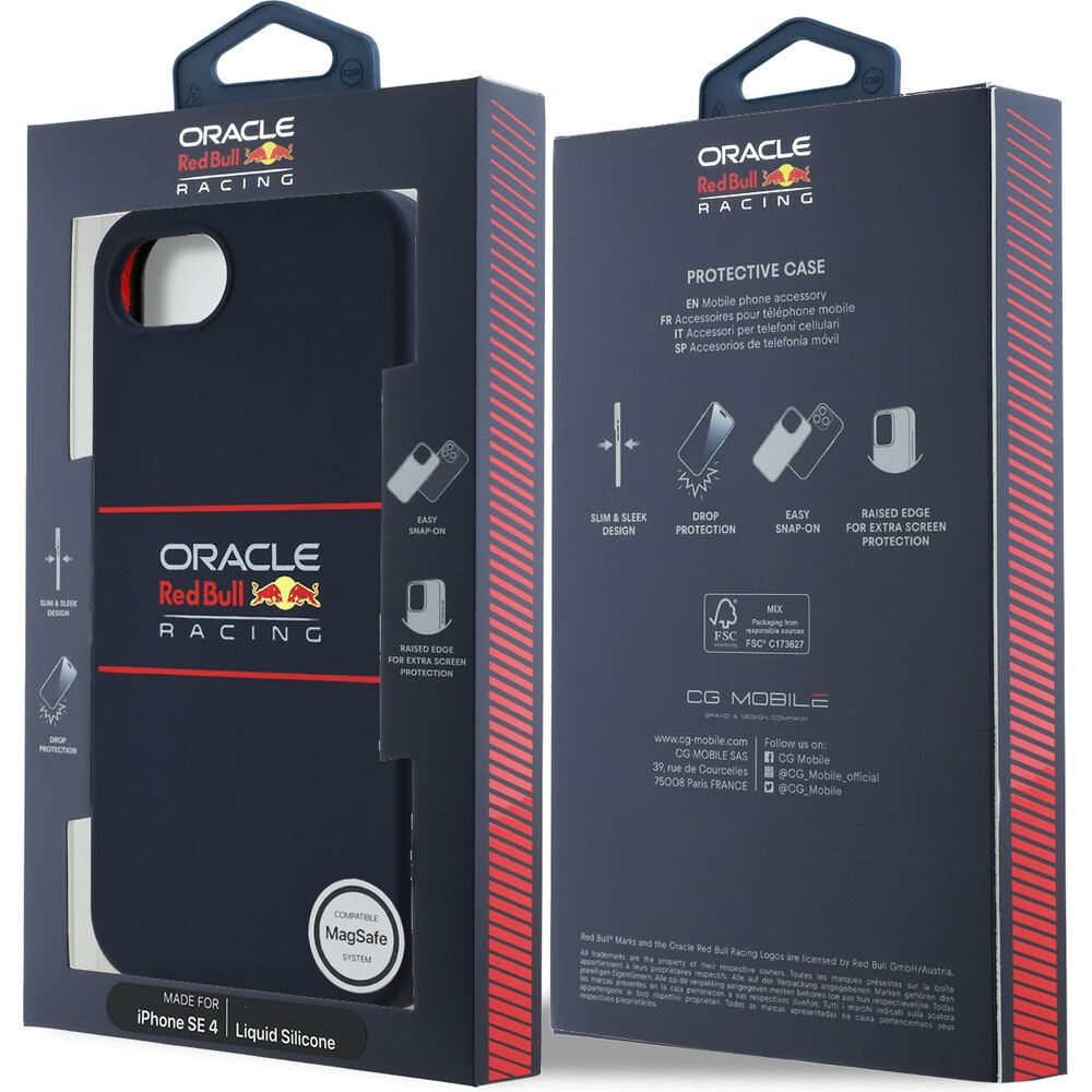 Oracle Red Bull Racing Silicone Horizontal Logo MagSafe kryt iPhone 16e modrý