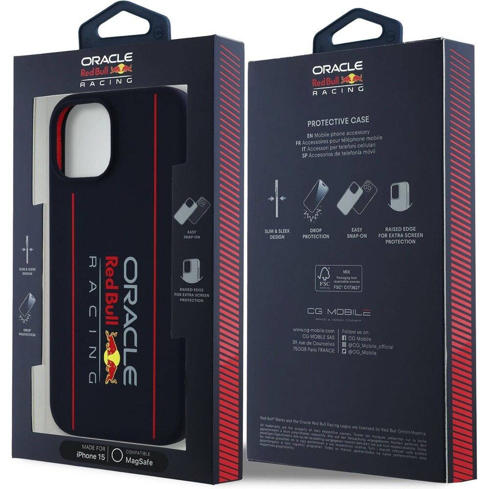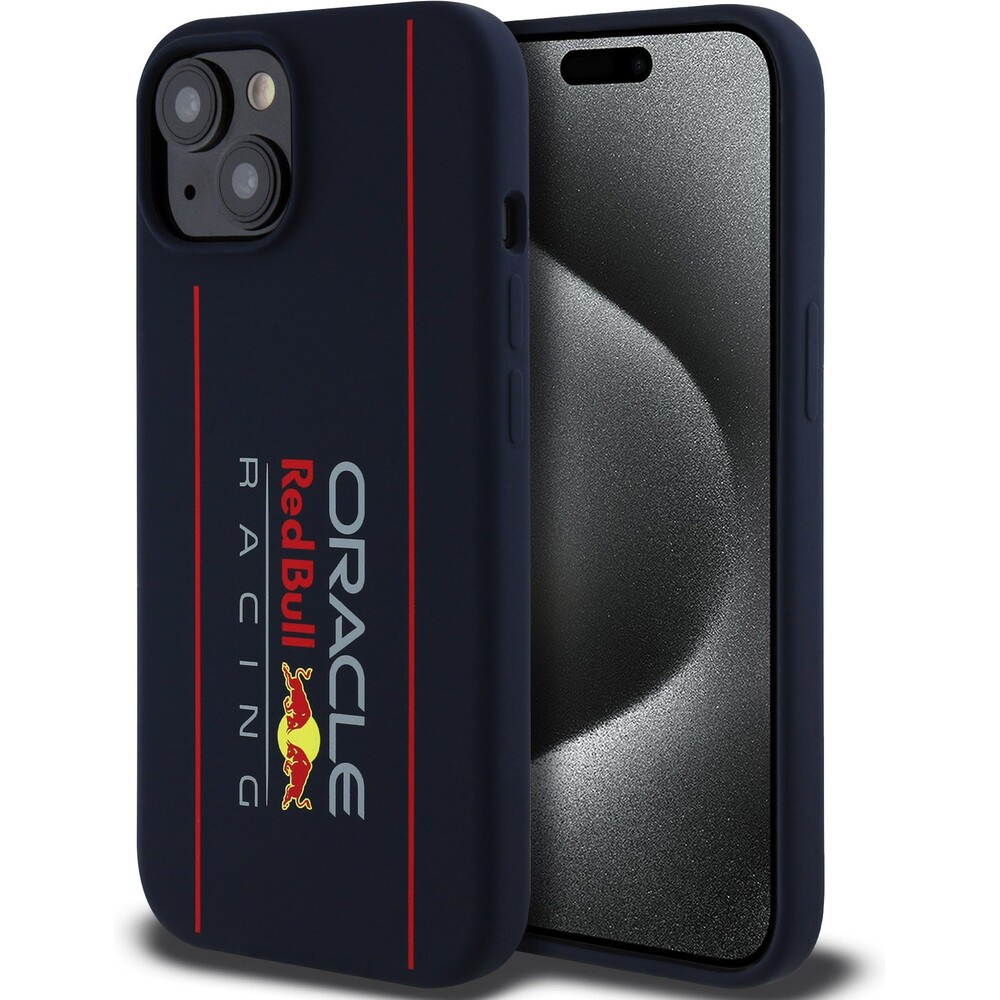 Oracle Red Bull Racing Silicone Vertical Logo MagSafe kryt iPhone 15 modrý