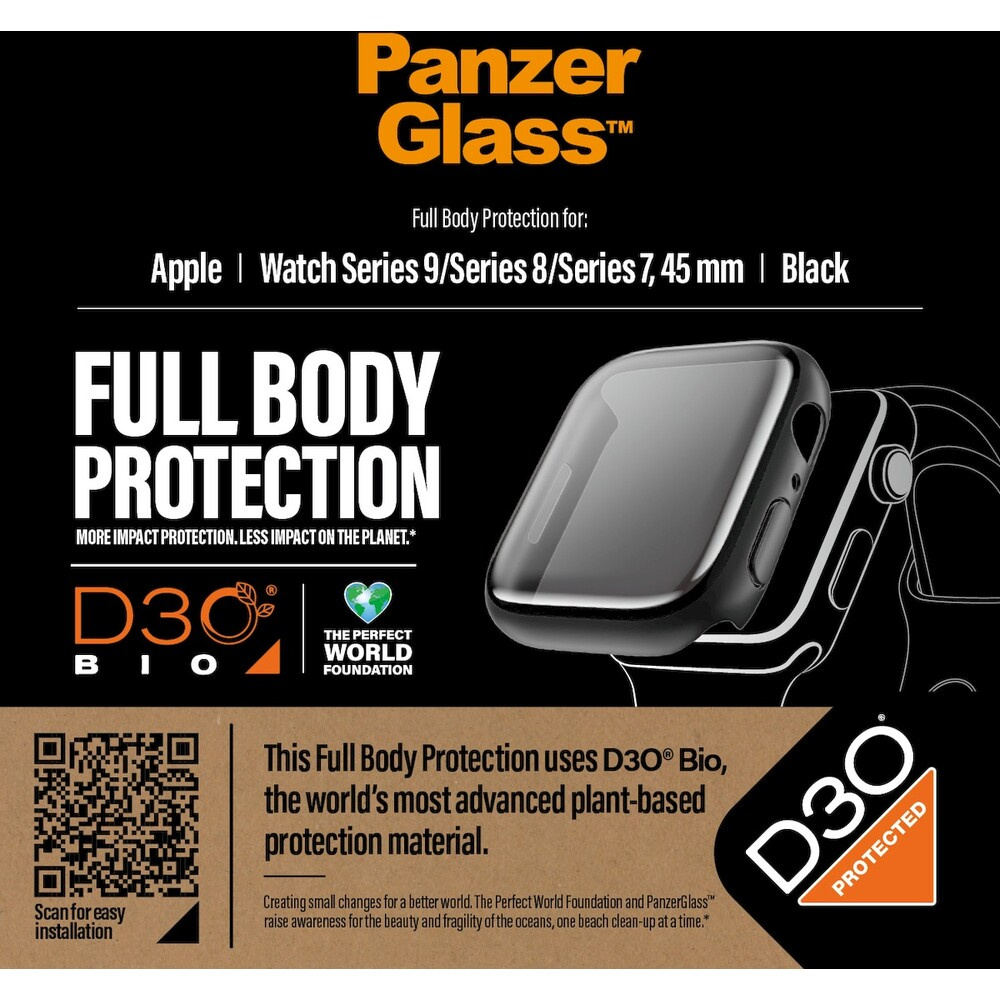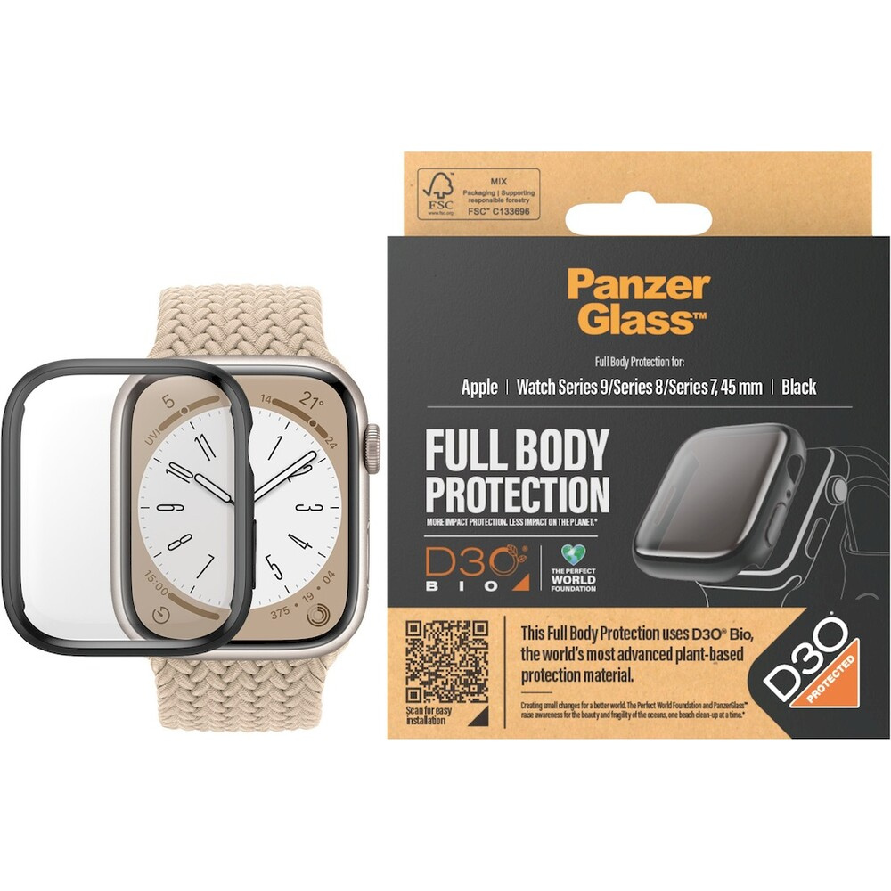 PanzerGlass Apple Watch 9/8/7 (45mm) ochranný kryt s D3O - černý rámeček