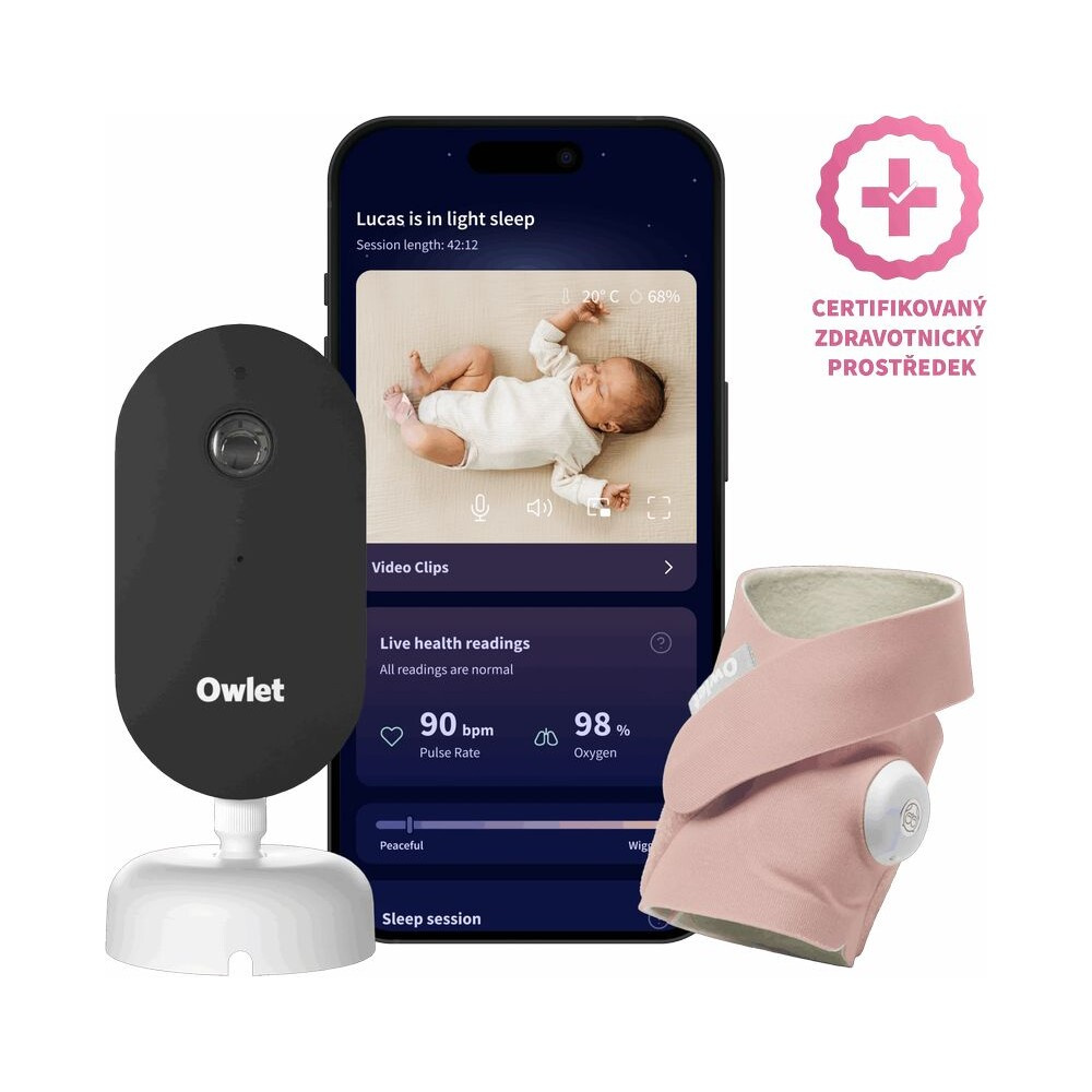 Owlet Dream Duo (3. gen.) chytrá ponožka Owlet Dream Sock & kamera Owlet Dream Sight růžová