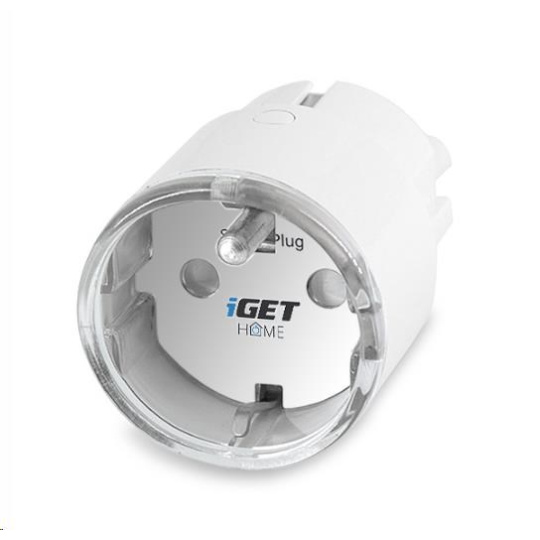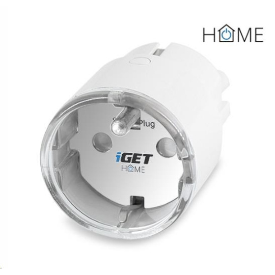 Chytrá zásuvka ovládaná přes WiFi, kompatibilní s aplikací iGET HOME, Google Assistant a Amazon Alexa, měření spotřeby energie, max. zatížení 3680 W, aplikace pro Android a iOS zdarma v češtině, nastavení časovačů, statistiky.
