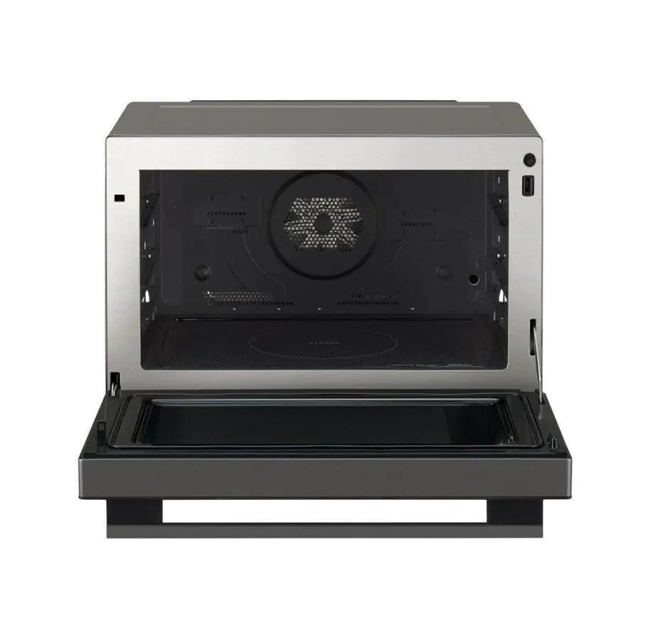 Trouba má nerezový vnitřek a samočisticí program pomocí horké páry, který čištění značně usnadňuje. S topným tělesem grilu chytře integrovaným do dutiny a designem bez otočného talíře můžete čistit bez námahy pouhým otřením. Navíc beztlačítkový vnější povrch umožňuje rychlé čištění.