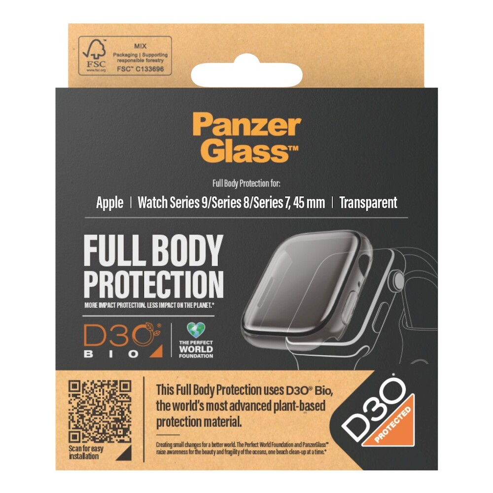 PanzerGlass Apple Watch 9/8/7 (45mm) ochranný kryt s D3O - čirý rámeček