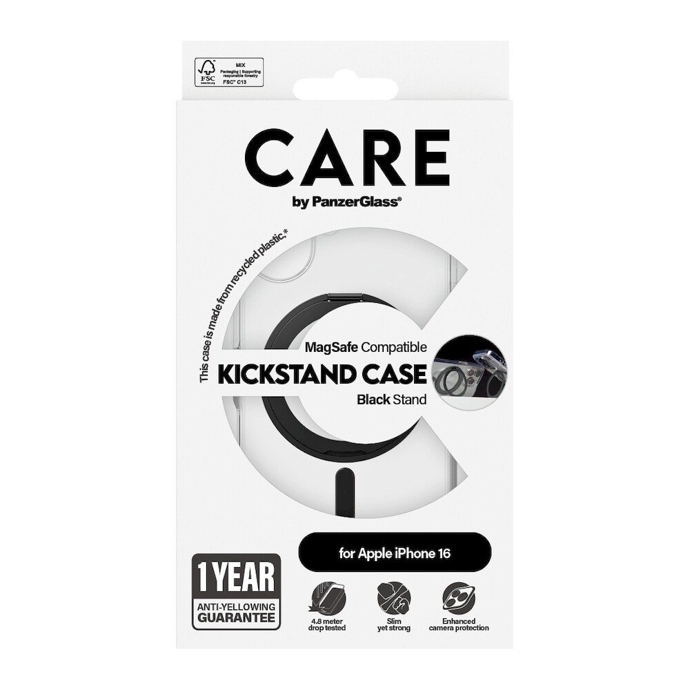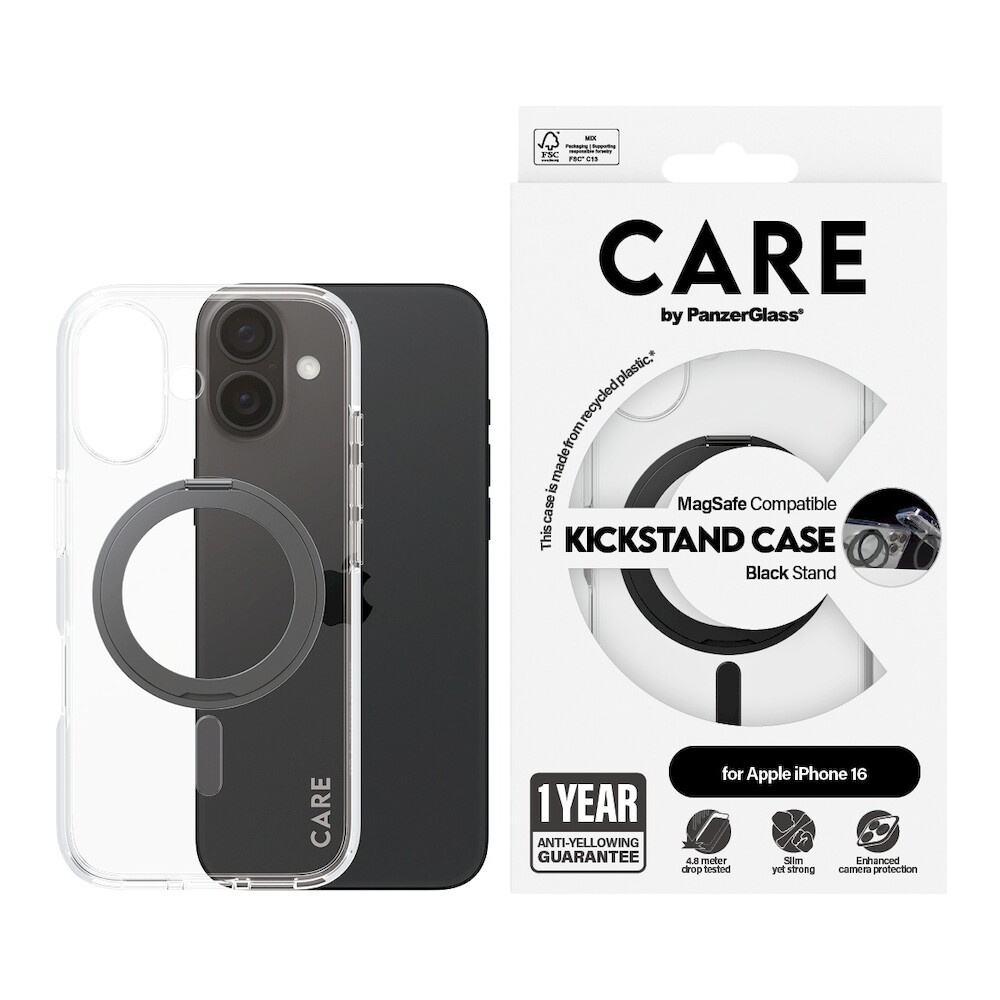PanzerGlass® CARE kryt Apple iPhone 16 MagSafe KickStand čirý/černý