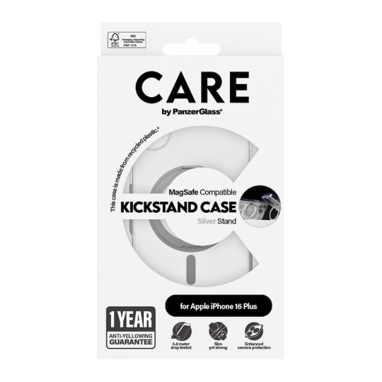 PanzerGlass® CARE kryt Apple iPhone 16 Plus MagSafe KickStand čirý/šedý
