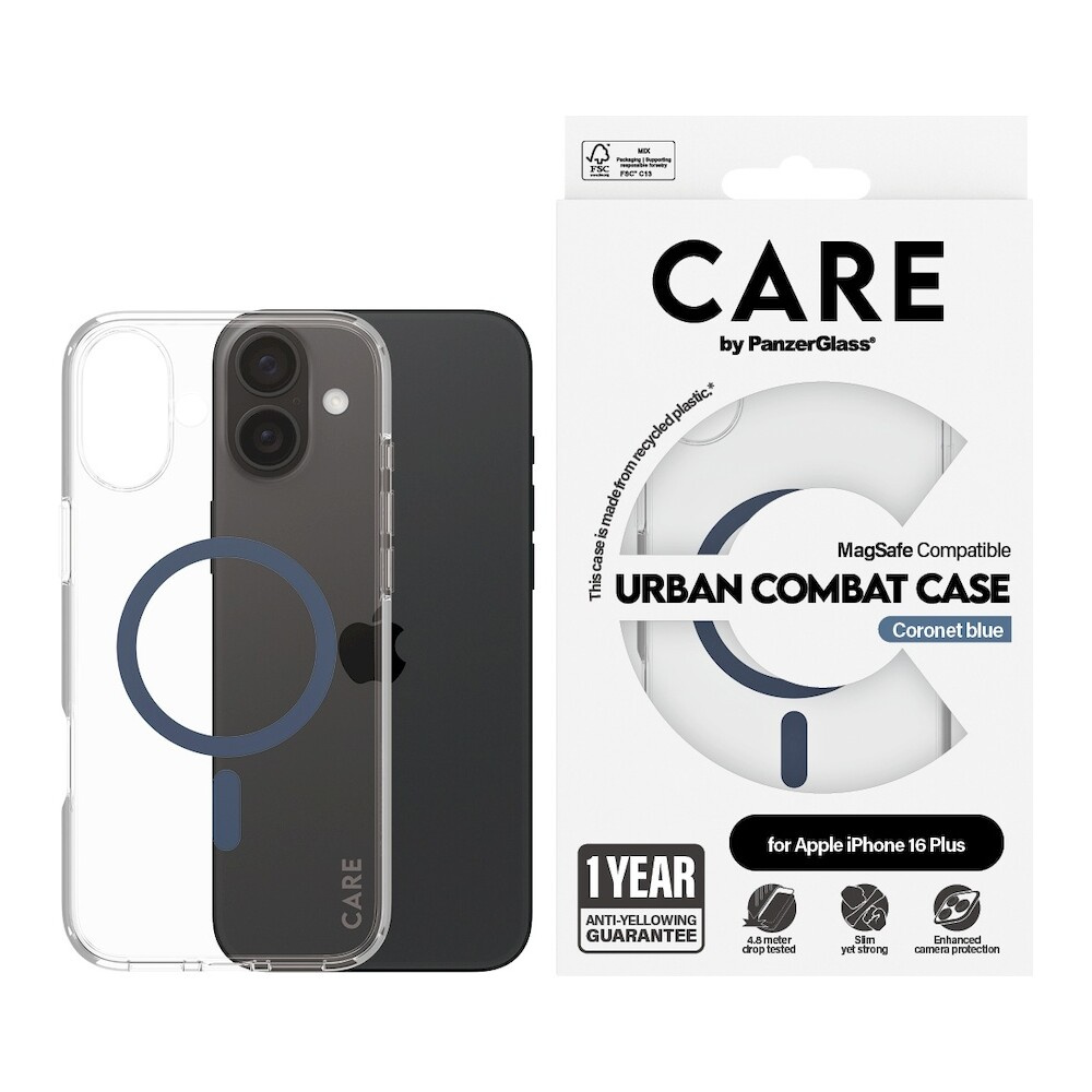 PanzerGlass® CARE kryt Apple iPhone 16 Plus MagSafe Urban Combat čirý/modrý