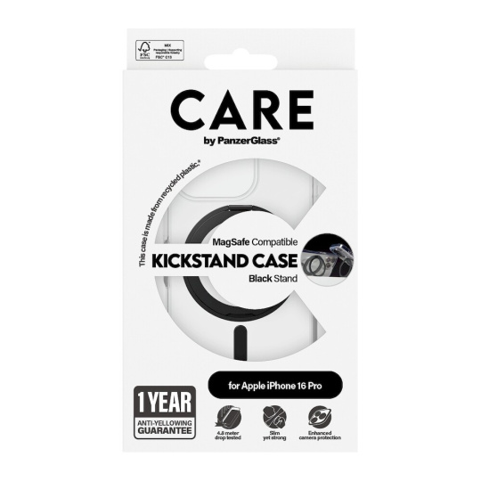 PanzerGlass® CARE kryt Apple iPhone 16 Pro MagSafe KickStand čirý/černý