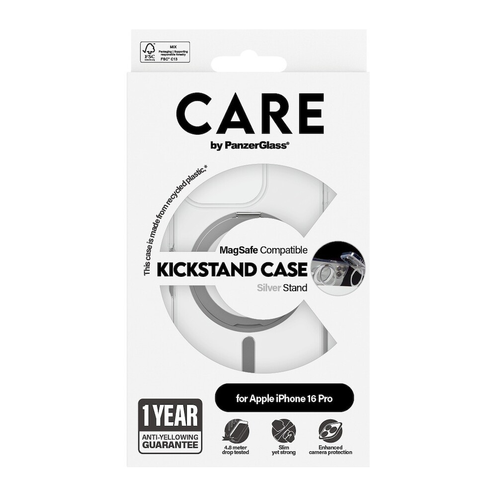 PanzerGlass® CARE kryt Apple iPhone 16 Pro MagSafe KickStand čirý/šedý