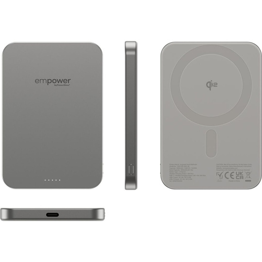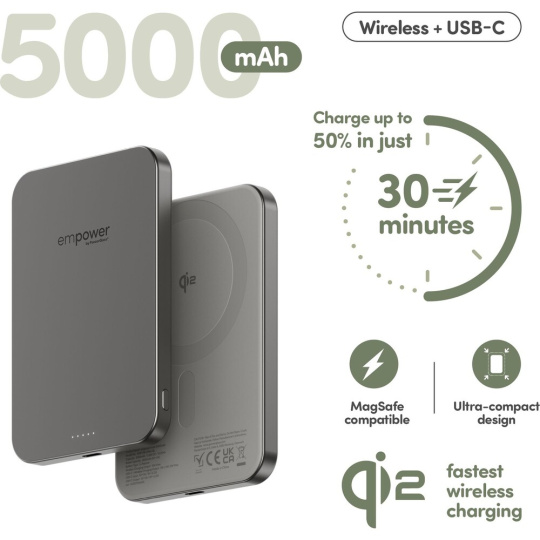 PanzerGlass® empower bezdrátová Qi2 powerbanka 5000 mAh, MagSafe, šedá
