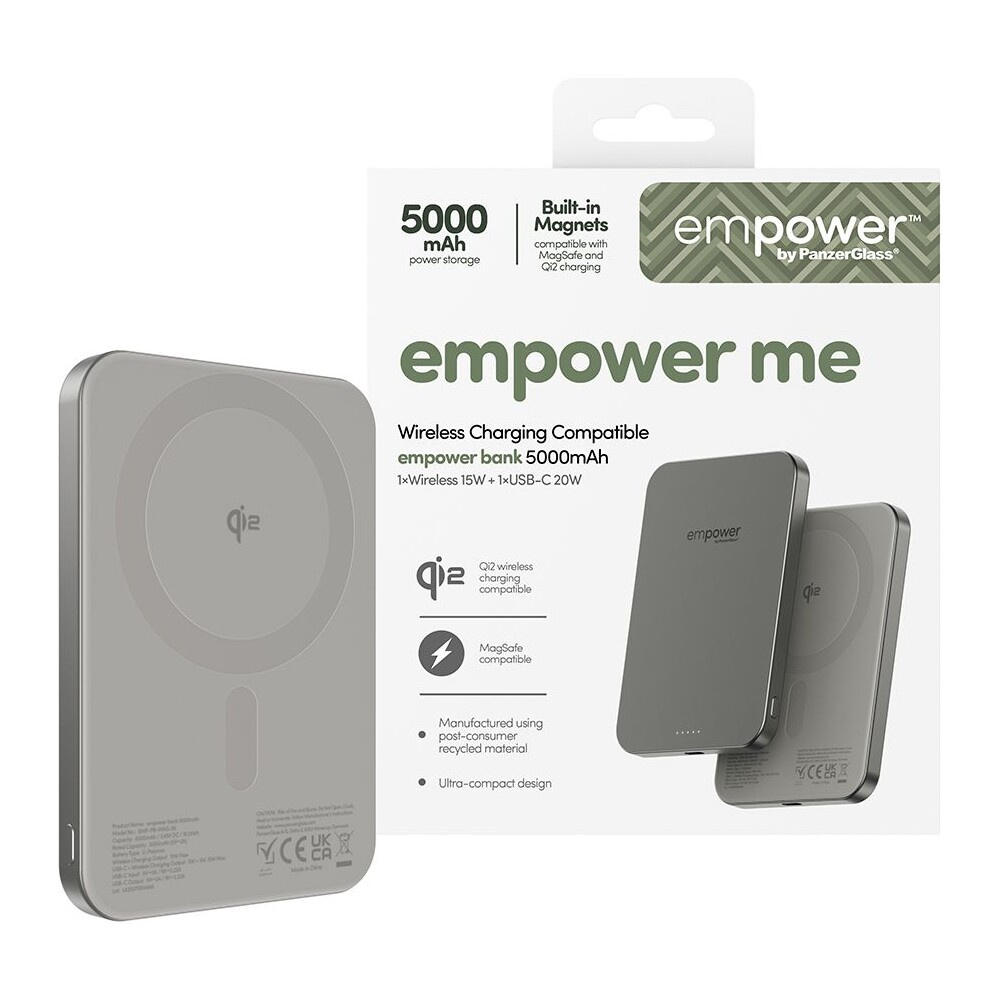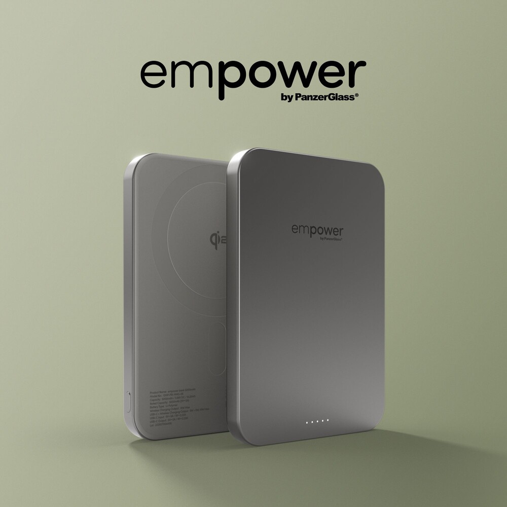 PanzerGlass® empower bezdrátová Qi2 powerbanka 5000 mAh, MagSafe, šedá