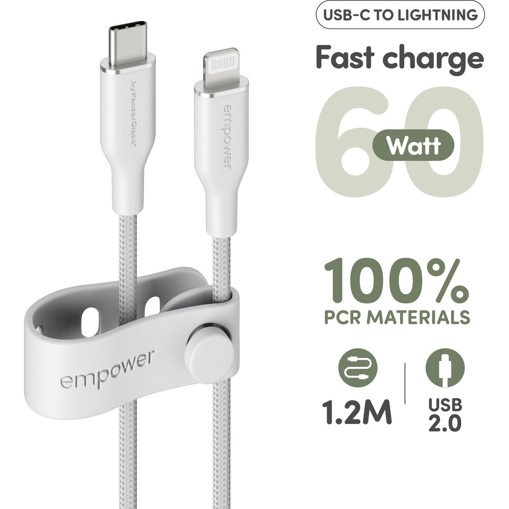 PanzerGlass USB-C/Lightning napájecí kabel 60W 1,2m bílý