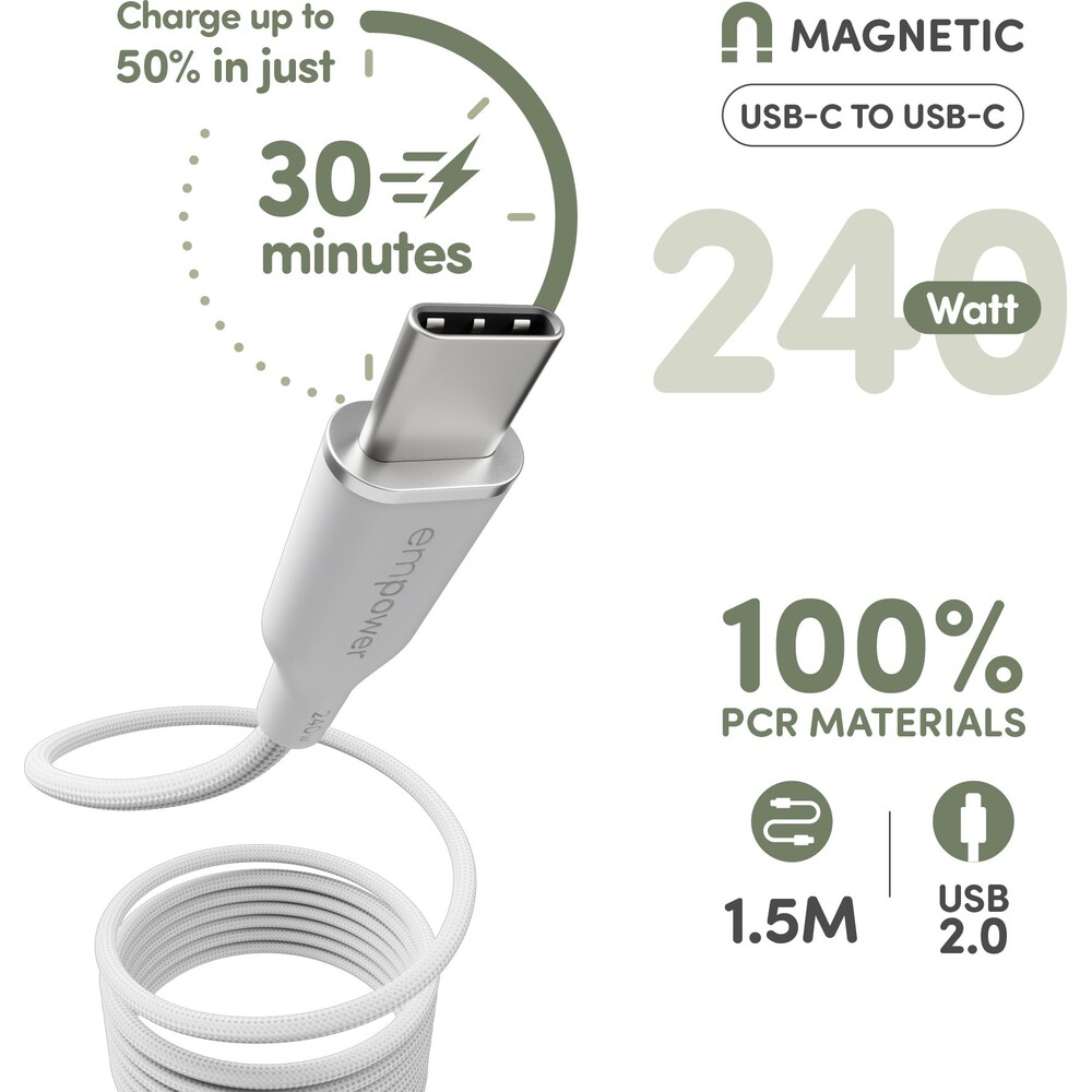 PanzerGlass® empower magnetický kabel (240 W) USB-C/USB-C, 1,5 m, bílý