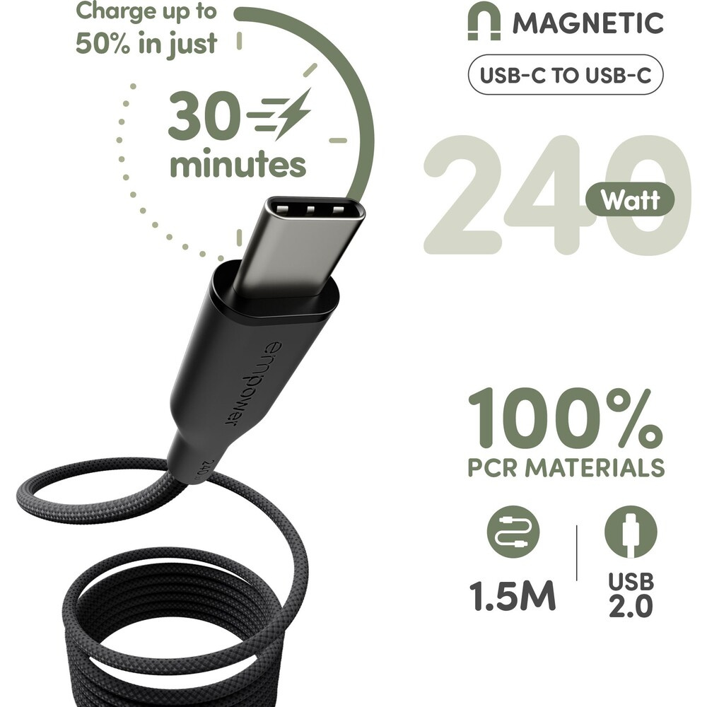 PanzerGlass USB-C/USB-C magnetický napájecí kabel 240W 1,5m černý