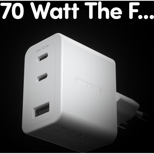 PanzerGlass® empower nabíječka Turbo GaN (70 W) 2x USB-C + 1x USB-A, bílá