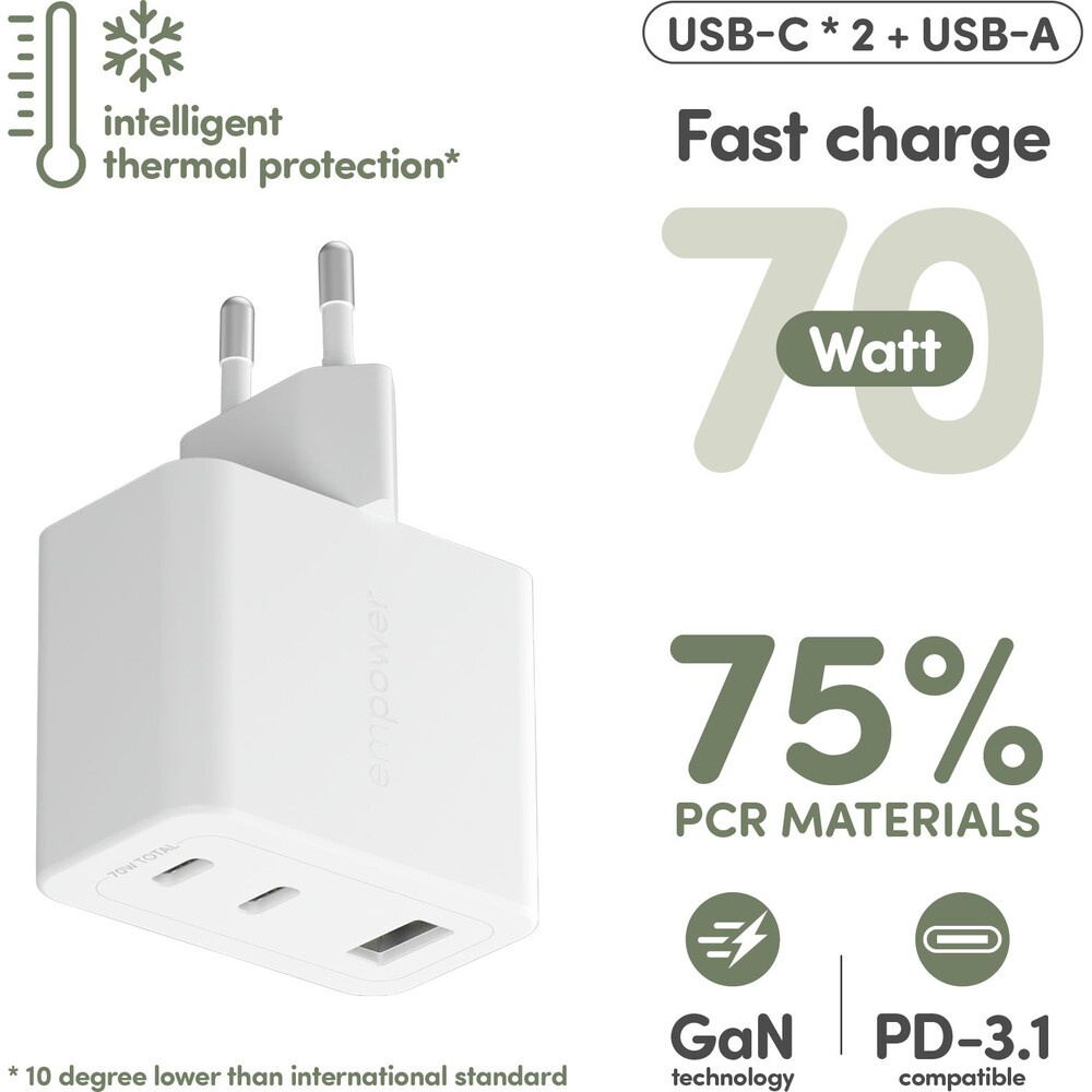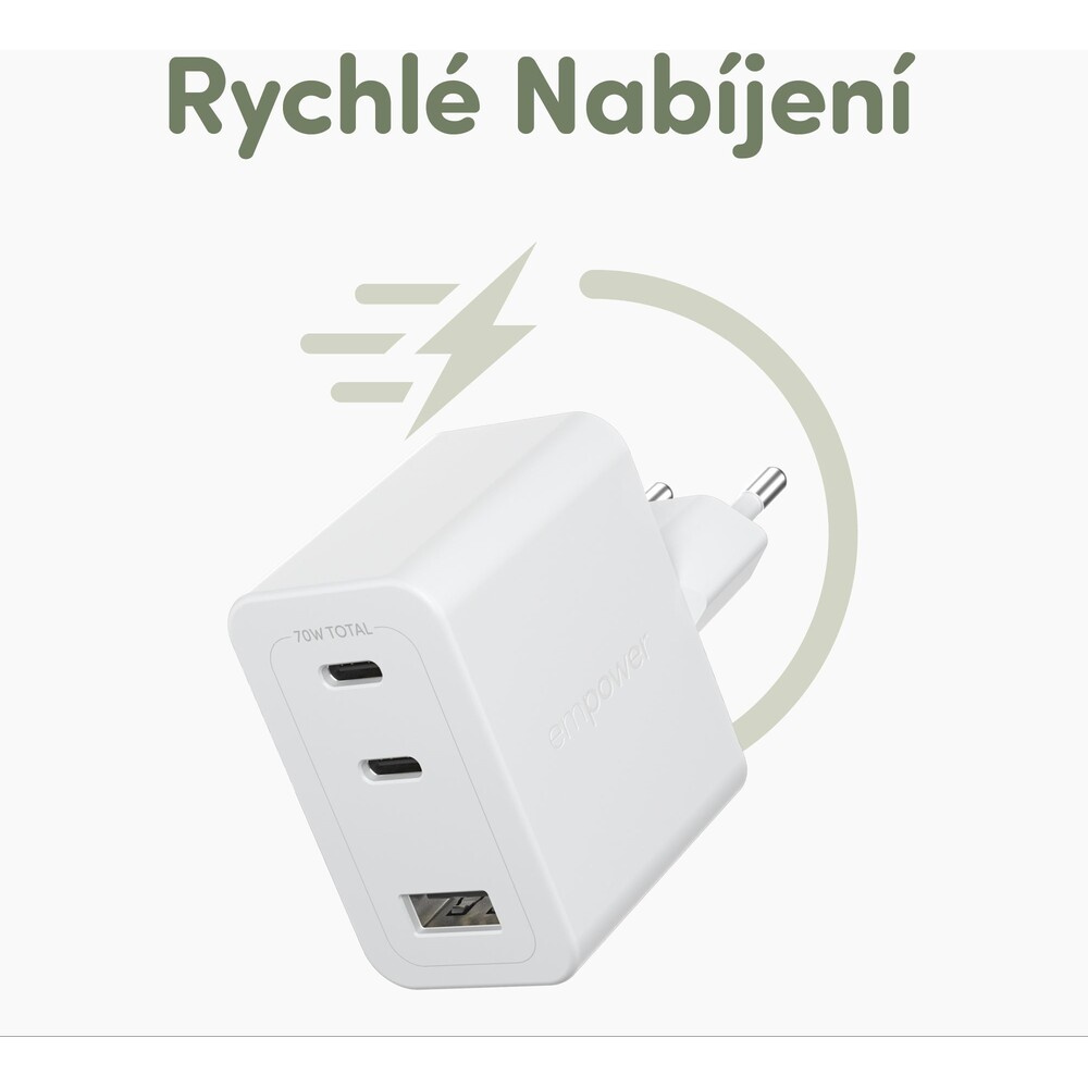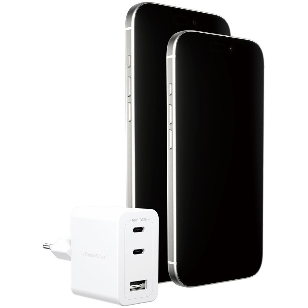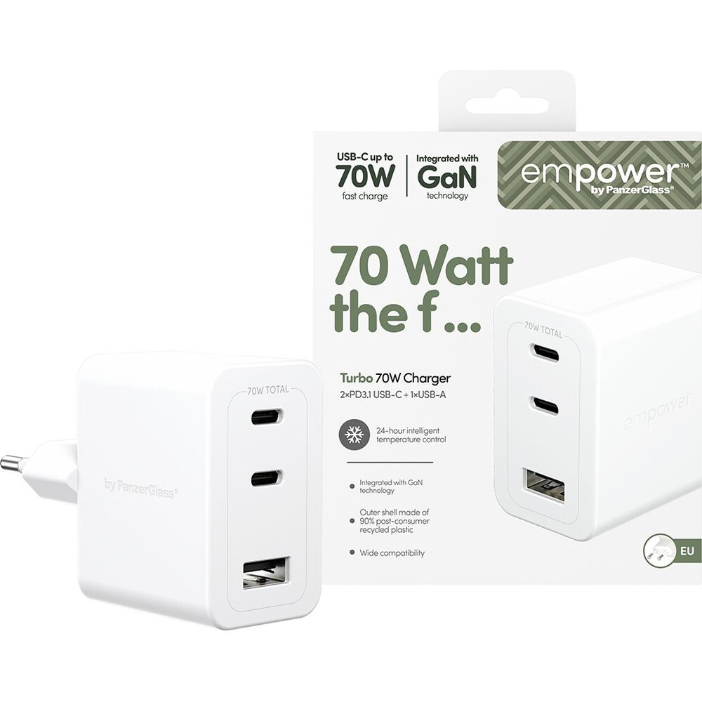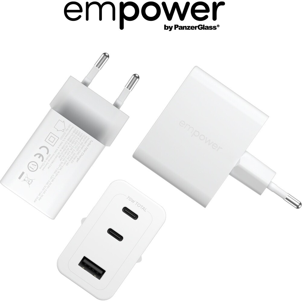 PanzerGlass® empower nabíječka Turbo GaN (70 W) 2x USB-C + 1x USB-A, bílá