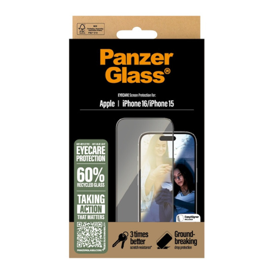 PanzerGlass® EyeCare sklo s antireflexní vrstvou Apple iPhone 16/15