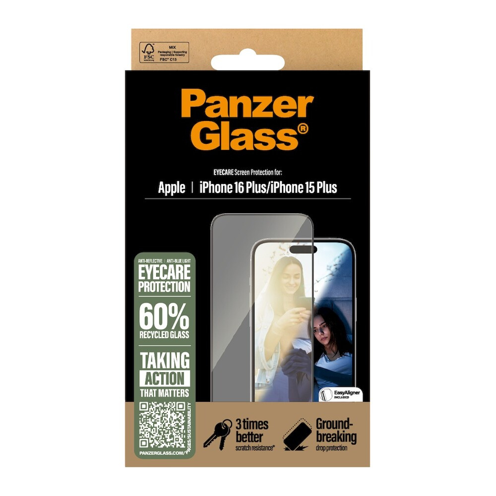 PanzerGlass® EyeCare sklo s antireflexní vrstvou iPhone 16 Plus/15 Plus