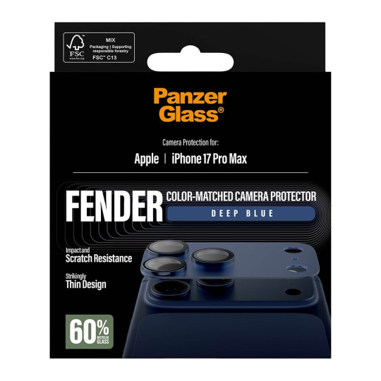 PanzerGlass® FENDER hliníková ochrana fotoaparátu Apple iPhone 17 Pro Max tmavě modrá