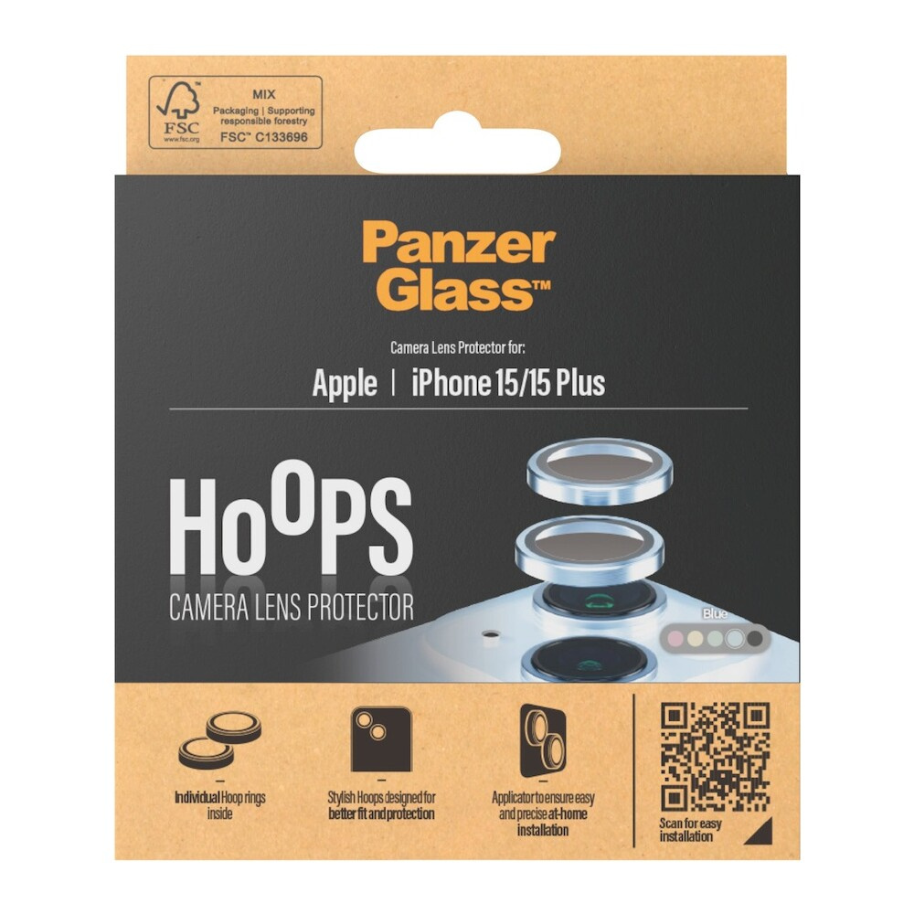 PanzerGlass HoOps ochranné kroužky Apple iPhone 15/15 Plus - modrý hliník