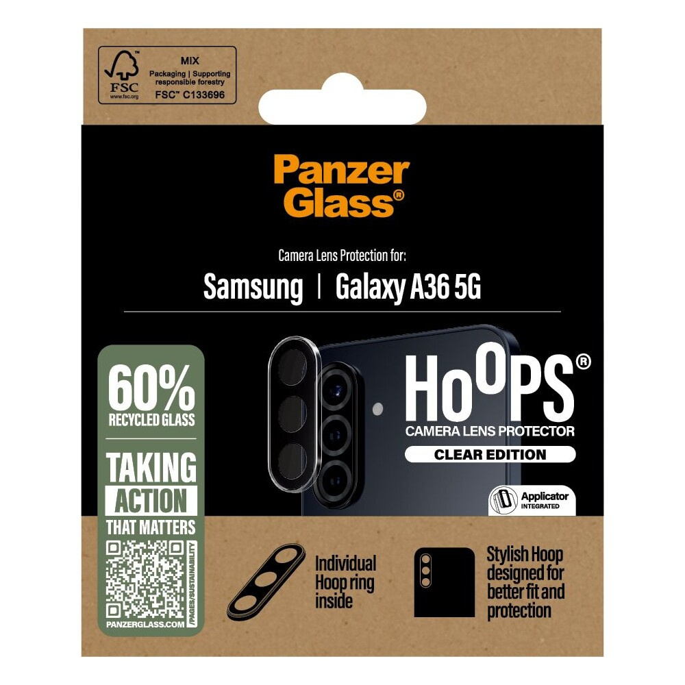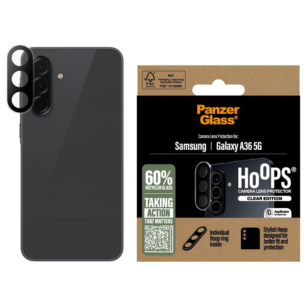 PanzerGlass® Hoops® Samsung Galaxy A36 5G čiré ochranné kroužky pro čočky fotoaparátu