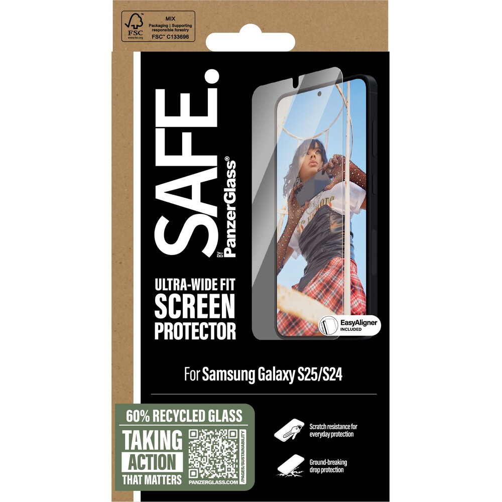 PanzerGlass® SAFE Ultra-Wide Fit sklo Samsung Galaxy S25/S24 s instalačním rámečkem
