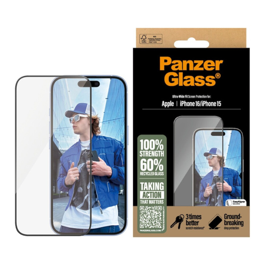 PanzerGlass® Ultra-Wide Fit Apple iPhone 16/15 s instalačním rámečkem