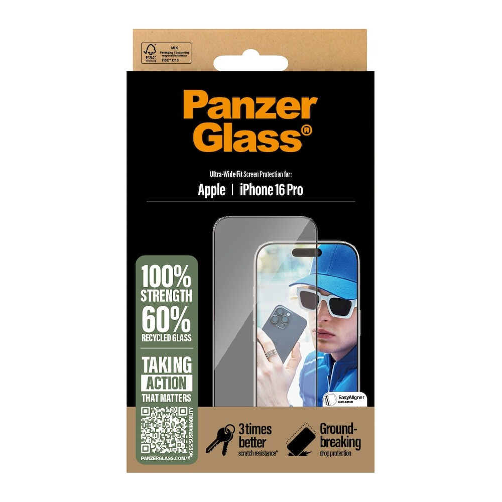 PanzerGlass® Ultra-Wide Fit Apple iPhone 16 Pro s instalačním rámečkem