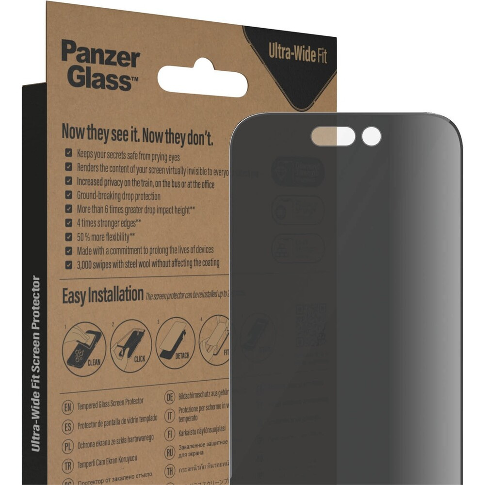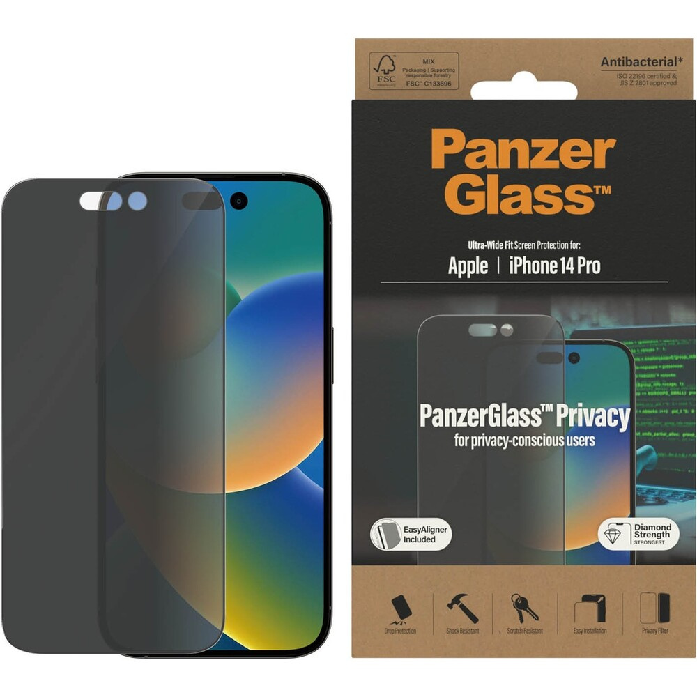 PanzerGlass™ Ultra-Wide Fit Privacy iPhone 14 Pro s instalačním rámečkem