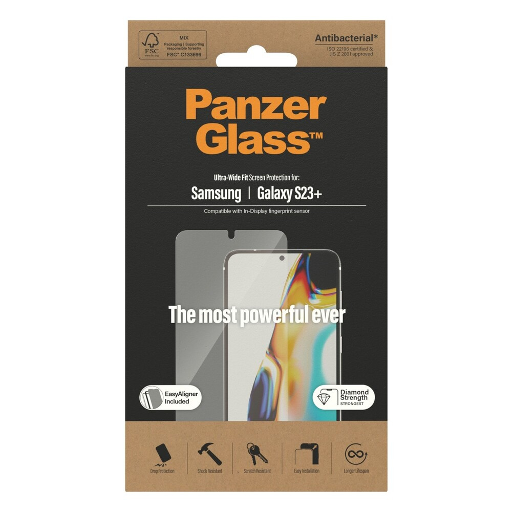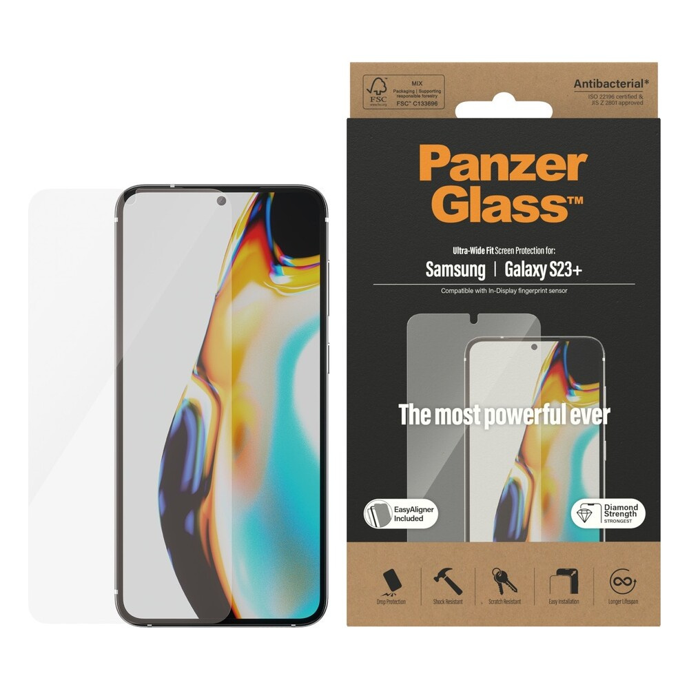 PanzerGlass™ Ultra-Wide Fit Samsung Galaxy S23+/S22+ s funkčním otiskem prstů a instalačním rámečkem