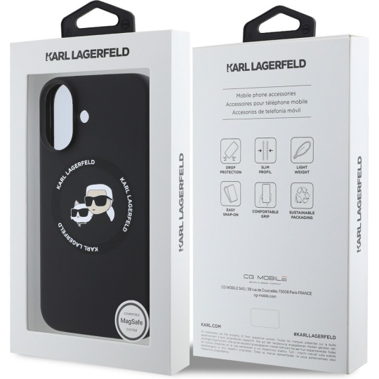 Karl Lagerfeld Liquid Silicone K&CH Heads MagSafe kryt pro iPhone 16 černý