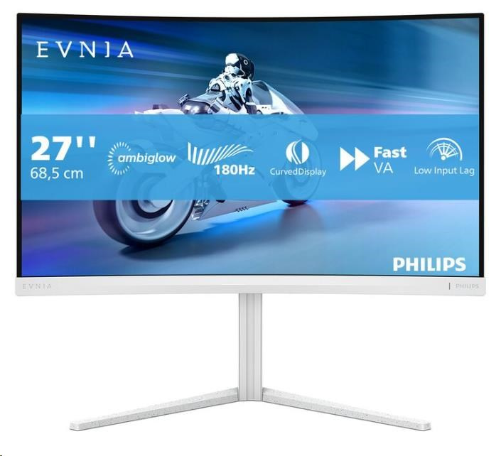 Philips MT 27" 27M2C5201L - 1920x1080,Fast VA,180Hz,2xHDMI,1xDP,zakřivený,bílá