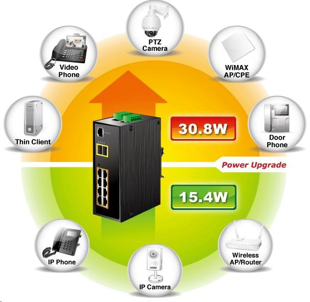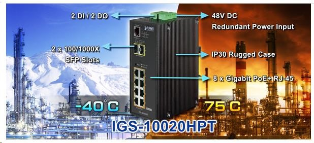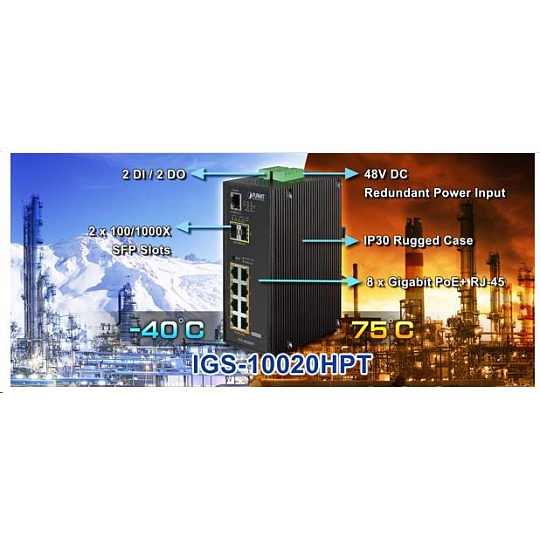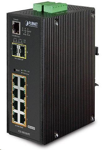 Planet IGS-10020HPT PoE switch 8x 1000Base-T, 2x SFP, 802.3at 270W, IP30, -40 až 75°C, SNMP, IGMPv3, IPv6