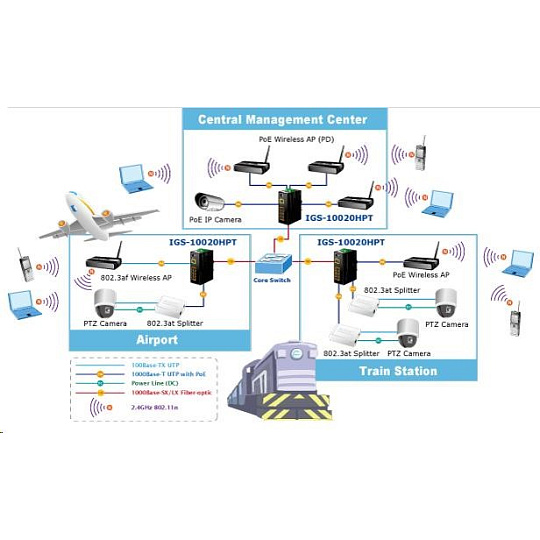 Planet IGS-10020HPT PoE switch 8x 1000Base-T, 2x SFP, 802.3at 270W, IP30, -40 až 75°C, SNMP, IGMPv3, IPv6 Inteligentní přepínače pro průmyslový Ethernet jsou určeny do náročných provozních podmínek s velkým rozsahem pracovních teplot, nejistým napájením a častými otřesy. Zároveň poskytují vynikající možnosti vícenásobných propojení pro dosažení robustnosti propojení systémů s velmi nízkou dobou zotavení. IGS-10020HPT je vybaven pro redundanci kromě dobře známé metody Spanning Tree (jejíž doba zotavení je v řádu sekund) především specializovanou funkcí "Redundant ring" která má dobu zotavení a nalezení nové cesty do 300ms. Jako PoE přepínač umožňuje přímo napájet až 8 koncových zařízení dle normy IEEE 802.3at, je tak ideálním prvkem pro aplikace se sníženou možností napajení. Přepínače řady IGS se snadno instalují na standardní DIN lištu nebo přímo na zeď a umožňují nasazení dobře známé Ethernetové technologie i v průmyslovém prostředí. Stejně tak jsou vhodné pro instalace do venkovně umístěných skříní s velkým kolísáním pracovních teplot (typicky bezdrátové a MAN ISP aplikace). Vlastnosti: - 8 portů 1000Base-T, Switching, Full Duplex (1000/2000 Mbps), Auto-Negotiation (10/100/1000 Mbps), automatická detekce přímý/křížený kabel na každém portu - na všechny implementace PoE IEEE 802.3at injektory se zatížitelností 30W/port, celkově až 270W - 2 porty SFP pro instalaci modulů 1000Base-SX/LX/BX nebo 100Base-FX - propustnost: sběrnice 20Gbps, 14,8Mp/s (64B) - podpora Jumbo Frame do 9kB, 8k MAC adres, buffer 4Mbity - 255 VLAN IEEE 802.1Q sítí, MAC nebo protocol based VLAN, VoIP VLAN - agregace linek "port trunking" IEEE 802.3ad LACP - IGMP v1,v2,v3 až do 256 multicast skupin, IGMP querier mode - 8-úrovní QoS prioritizace provozu dle portu, DSCP/ToS, 802.1p nebo 802.1Q značky - podpora Spanning Tree IEEE 802.1d, Rapid Spanning Tree IEEE 802.1w - IP/MAC ACL (access control list) do 123 pravidel, MAC/IP binding - DHCP snooping - port shaper - administrace Web/SNMPv3 s podporou zabezpečeného přenosu SSH/SSL - podpora IPv4/IPv6 - PoE scheduler pro možnost zapínání/vypínaní napájení podle časového plánu - pole LED indikátorů pro diagnostiku provozu - instalace na DIN lištu, montážní díl součástí - instalace na zeď, montážní díl součástí - krytí IP30 - napájení: 48V DC redundantní, připojení možné ze dvou různých zdrojů (nejsou součástí balení); vlastní příkon do 30W - ochrana proti přepólování, připojení napájení na svorkovnici, umístění na spodním panelu (nepřekáží při montáži na zeď) - přepěťová ochrana napájení do 6kV proti napěťovým špičkám (EFT) - přepěťová ochrana LAN portů do 6kV proti elektrostatickému náboji (ESD) - spínací poplachové relé (24V/1A) při výpadku primárního napájení - zařízení je odolné proti pádu (IEC-60068-2-32) z výšky 75cm na všechny dopadové části - zařízení je odolné proti vibracím (IEC-60068-2-6) 10-500-10Hz, 4x g, 0,5oct/min - zařízení je odolné proti přetížení krátkodobému zrychlení 50g, dlouhodobému 4g, (IEC-60068-2-27) - EMI/EMS, elektromagnetická kompatibilita a slučitelnost dle CE EN-6100-4-2,3,4,5,6 - elektrická bezpečnost dle CE EN-60950 - pracovní teplota -40 až 75°C, vlhkost do 95% - hmotnost: 1684g - rozměry: 152 x 107x 72 mm.
