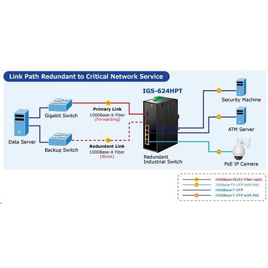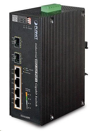 Planet IGS-624HPT, PoE switch 4x 1000Base-T, 2x SFP 100/1000Base-X, 802.3at 120W, DIN,IP30, -40 až +75st.C