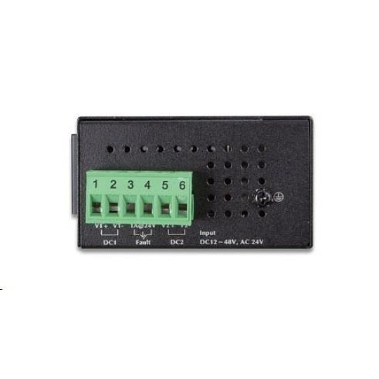 8portový 100Mbitový přepínač a konvertor pro průmyslové aplikace. Možnost redundantního napájení DC 12-48V / AC 24V, příkon <2,5W.