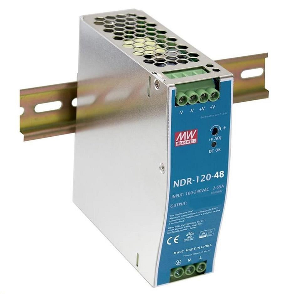 Planet PWR-120-48, Mean Well průmyslový zdroj na DIN lištu, nastavitelný 48-56V DC, 120W