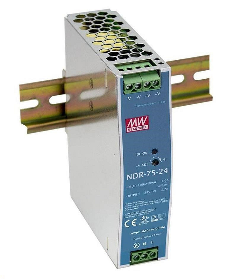 Planet PWR-75-48, Mean Well průmyslový zdroj na DIN lištu, nastavitelný 48-56V DC, 75W