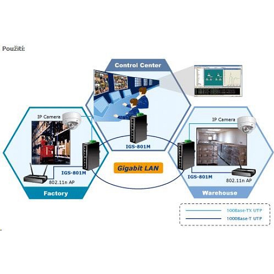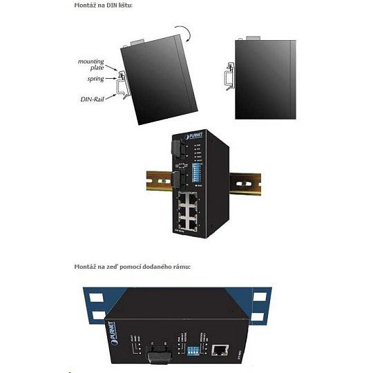 Planet switch IGS-801M, 8X 1000BASE-T, DIN, IP30, -10 AŽ 60°C, ESD+EFT DO 6KV, WEB/SNMP, VLAN, STP