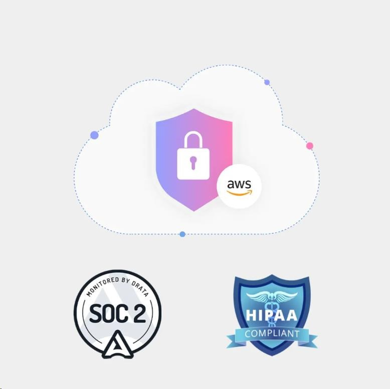 Plaud klade maximální důraz na bezpečnost vašich dat. Používá hosting pouze na serverech Amazon AWS. Navíc jsou rekordéry certifikovány pro soulad s auditním standardem SOC2 a zdravotnickým standardem pro nakládání s citlivými daty pacientů HIPAA.