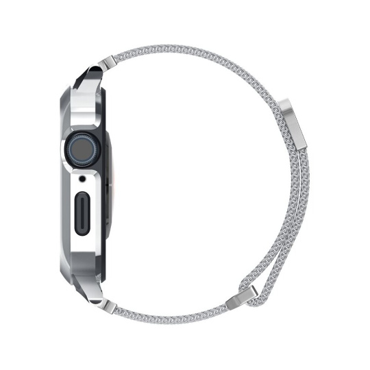 Spigen Metal Fit Pro řemínek s pouzdrem Apple Watch 9/8/7 (45mm) stříbrný