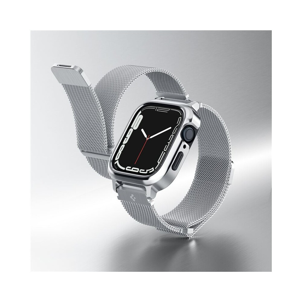 Spigen Metal Fit Pro řemínek s pouzdrem Apple Watch 9/8/7 (45mm) stříbrný