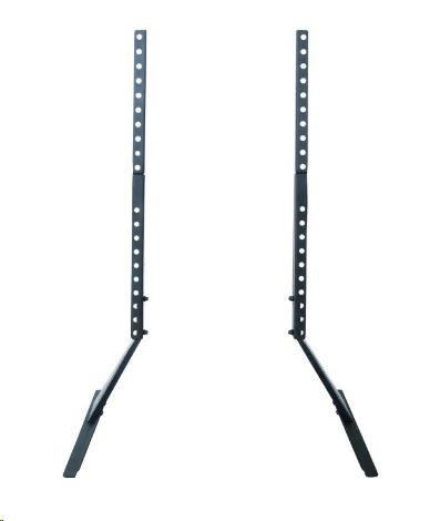 Nožky na televizi s nosností 50kg, na Tv 37" až 65", výškové nastavení Stabilní podstava na televize, univerzální, vhodné na všechny typy, velikosti a značky televizorů s podporou VESA standardu. Výškové nastavení, nosnost 50kg, barevné provedení černé, záruka 3 roky. Balení obsahuje sadu instalačního materiálu. Podstavec na televizi, nožky na Tv Ergosolid Castor 1 Technické údaje: nosnost 50kg podpora VESA standardů 100x100 až 800x500 doporučená úhlopříčka Tv 37" až 65" výškové nastevení 620mm až 683mm šířka podstavců 356mm protiskluzové podložky minimalistický design stabilní, bezpečný materiál ocel instalační materiál barevné provedení černé záruka 3 roky Ergosolid Castor 1 podporuje VESA standardy: VESA 100x100 VESA 200x100 a 100x200 VESA 200x200 VESA 300x100 a 100x300 VESA 300x200 a 200x300 VESA 300x300 VESA 400x200 a 200x400 VESA 400x300 a 300x400 VESA 400x400 VESA 600x400 VESA 800x400 VESA 800x500.