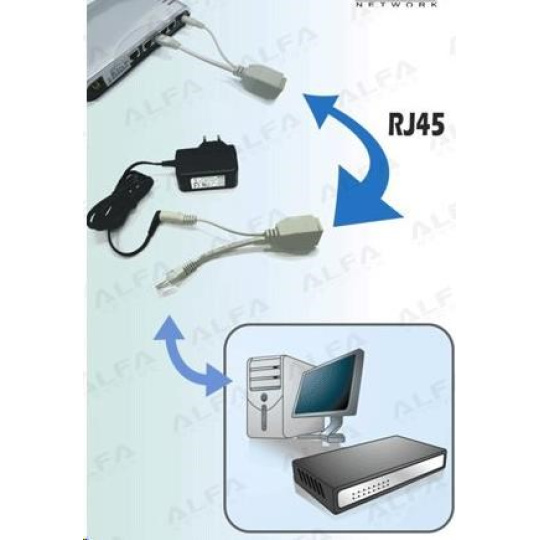 Pasivní PoE set injektoru a extraktoru sloužící pro napájení většiny RouteBOARDů. Jde o 100Mbps kabelovou variantu, kterou je možné použít k napájení jakéhokoliv zařízení s odpovídajícím vstupním napájecím konektorem. PoE set nesplňuje specifikaci IEEE 802.3af/at. K napájení slouží piny 4,5(-) a 7,8(+). Maximální povolený výkon je 48W při max. napětí 48V. Napájecí konektor má rozměry 5.5/2.1mm.