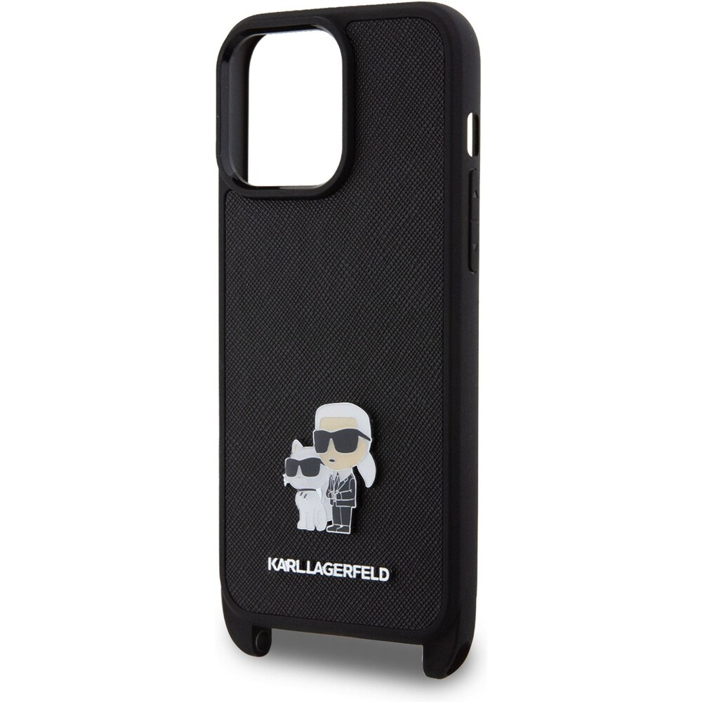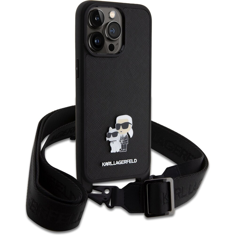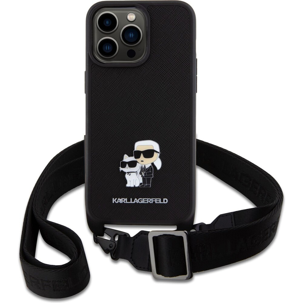 Karl Lagerfeld Saffiano Crossbody Metal Karl and Choupette kryt iPhone 15 Pro Max černý