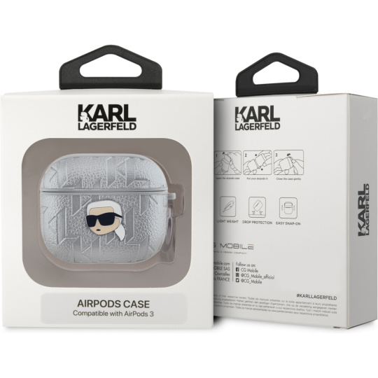 Karl Lagerfeld PU Embossed Karl Head pouzdro AirPods Pro 2 stříbrné