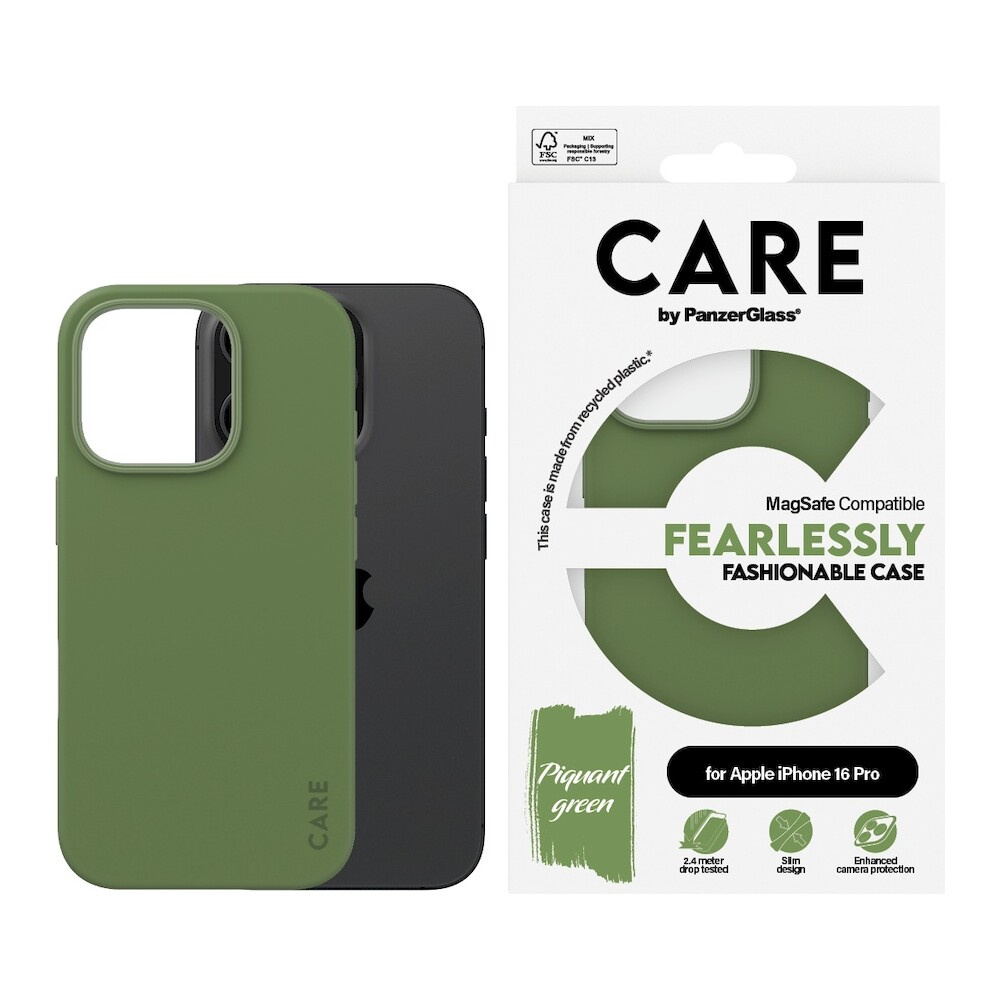 PanzerGlass® CARE kryt Apple iPhone 16 Pro MagSafe Fearlessly zelený