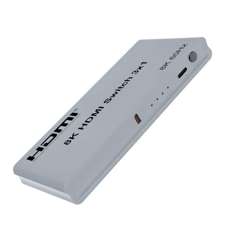 3 HDMI zařízení na vstupu sdílejí 1 výstupní monitor, projektor. Výběr vstupních zařízení: 1.automaticky, 2.stisknutím tlačítka na čele přepínače, 3.dálkovým ovladačem