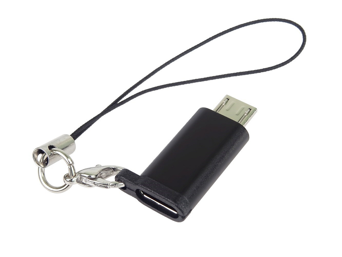 PremiumCord Adaptér USB-C konektor female - USB 2.0 Micro-B/male, černý s očkem na zavěšení
